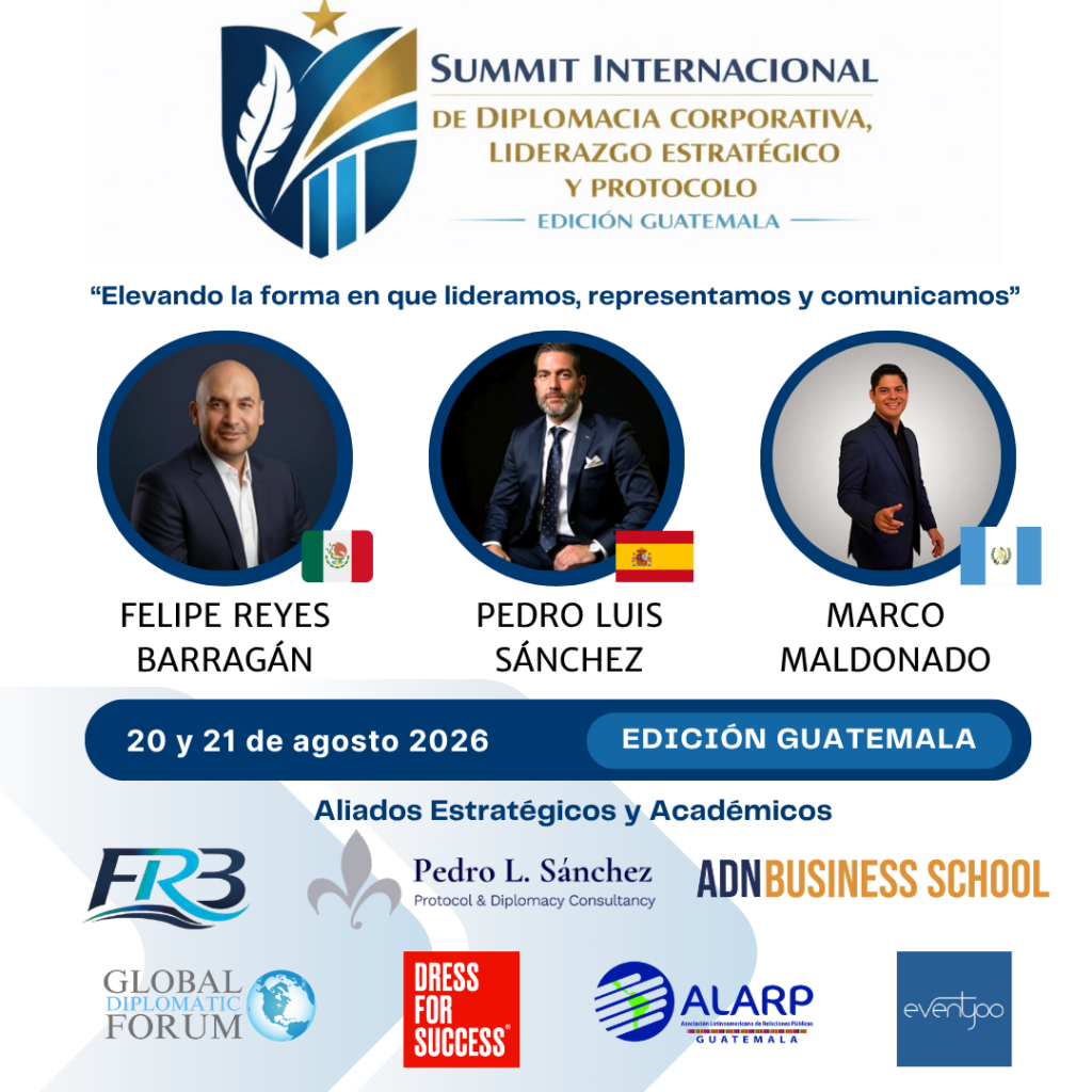 El Summit Internacional de Diplomacia Corporativa, Liderazgo Estratégico yProtocolo – Edición Guatemala es un encuentro de alto nivel que reúne alíderes y tomadores de decisión para fortalecer la forma en que lasorganizaciones se comunican, se representan y generan influencia.